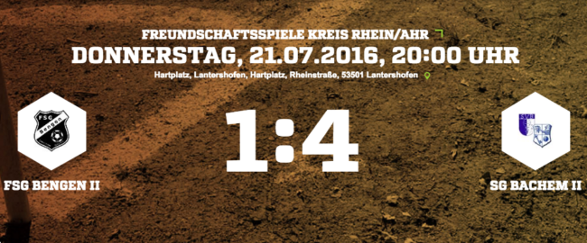 Die Reserve-Mannschaft aus Bengen verliert ihr zweites Testspiel mit 1:4 gegen den D-Ligisten aus Bachem. Das 1:0 schoß Chris Kläser bereits in der ersten Hälfte der ersten Halbzeit. Danach verlor man immer mehr die Kontrolle über das Spiel. Mit einer Verzögerung von 15 min. und einer Verlegung des Spielortes nach Bengen, konnte das Spiel zwischen…