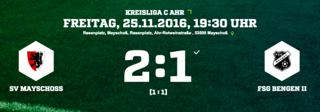 Am 15. Spieltag gastierte die FSG Bengen II beim Mayschoßer SV, dem Tabellenvierzenten der Kreisliga C Ahr. In dem Duell landete der SV Mayschoß einen 2:1 Heimsieg und kletterte in der Tabelle auf Platz 13. Die Heimmannschaft kam auf dem nassen und sehr rutschigen Rasen besser zurecht. Die Defensive der Mayschoßer brachte die Bengener immer…
