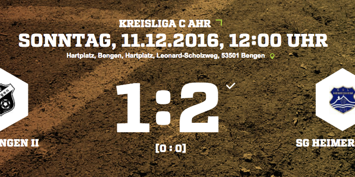 In der Schlussphase der Partie merkte man den Bengenern den Kampf an, zu müde waren die Beine von zu vielen Spielern. So ließ man den ein oder anderen Konter der SG zu. In der 80. Minute überspielte die SG Heimersheim die Bengener Abwehr, sodass diese sich nur noch mit einem Foul im Strafraum helfen konnte. Den gegebenen Elfmeter verwandelte Spieler Dadic sicher zur 2:0 Führung der Gäste. Die Bengener haben nochmal alles nach vorne geworfen und zumindest einen Anschlusstreffer erziehlt. Für den Ausgleich der Partie hat die Mannschaft aber sicherlich zu spät angefangen sich zu wehren.